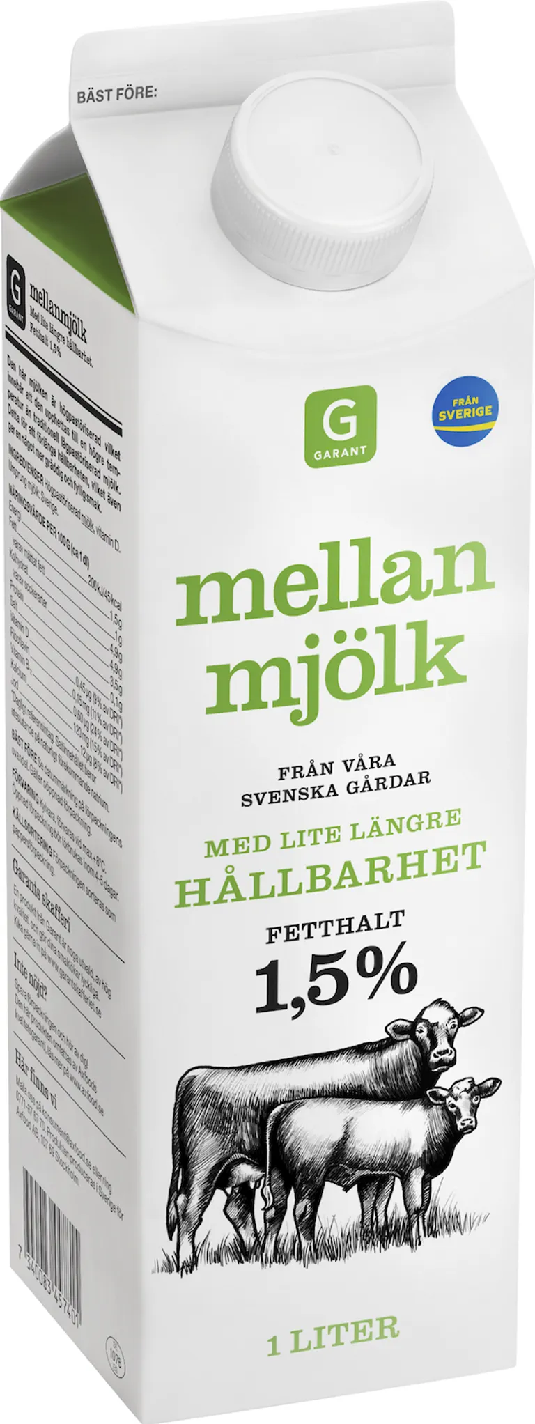 Mellanmjölk från våra svenska gårdar. Med lite längre hållbarhet. Fetthalt 1,5%. 1 liter.