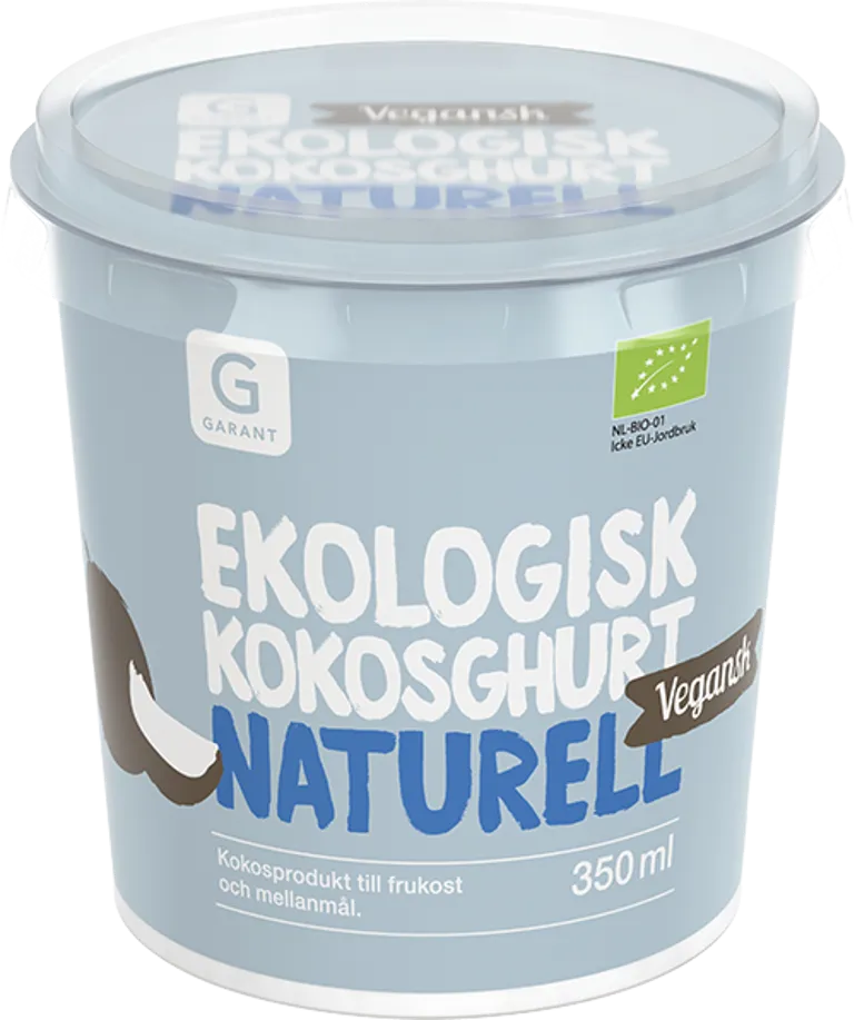 Ekologisk naturell kokosghurt. Kokosprodukt till frukost och mellanmål. Vegansk. 350 ml.