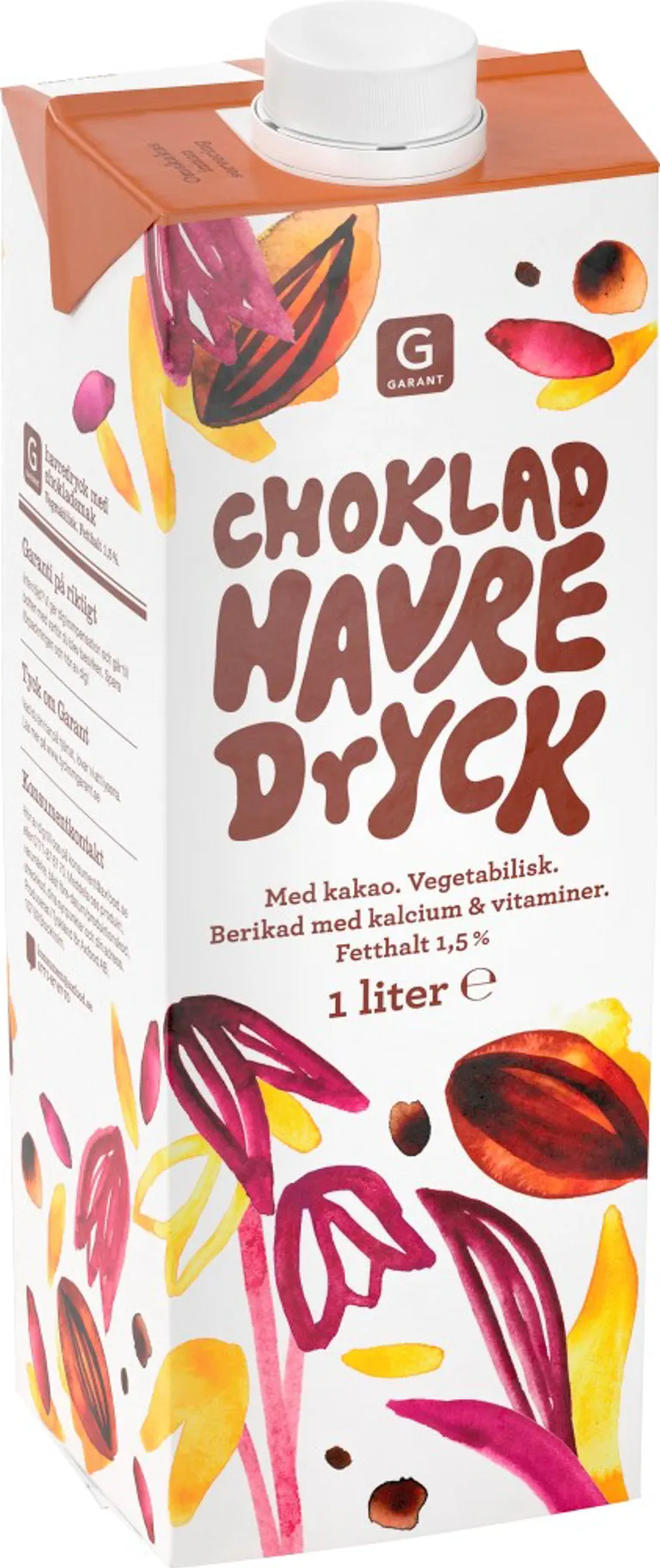 Vegetabilisk choklad-havredryck berikad med kalcium och vitaminer. Fetthalt 1,5 %.