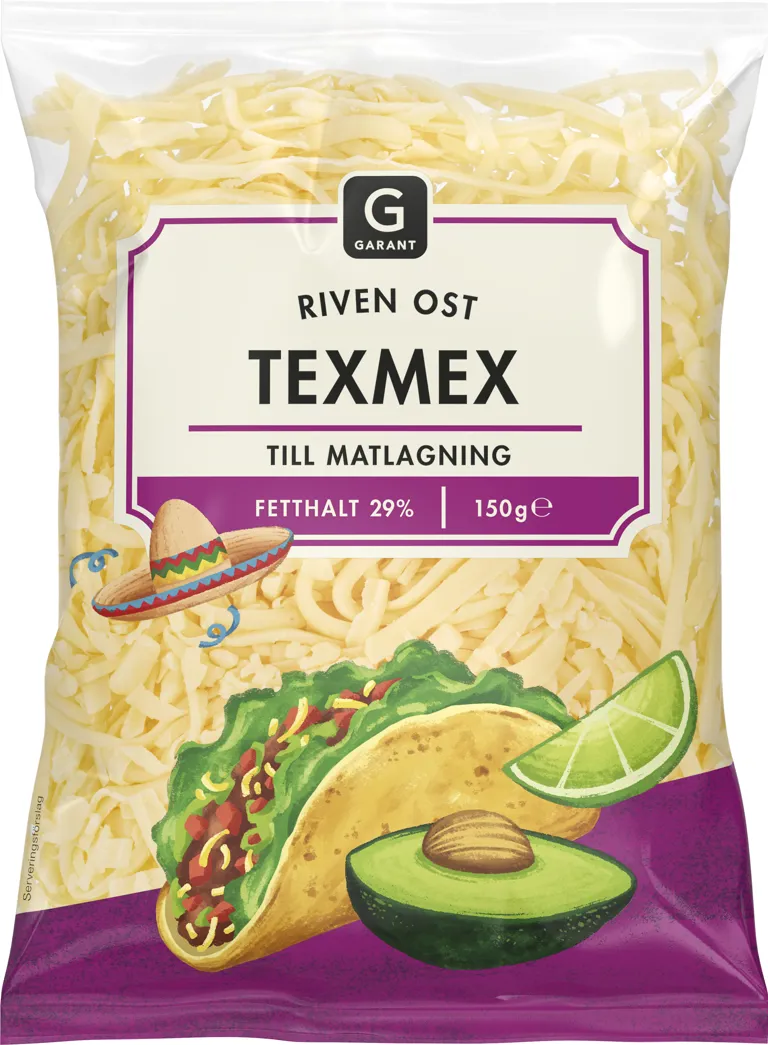 Riven ost texmex. Till matlagning. Fetthalt 29%. 150 gram.