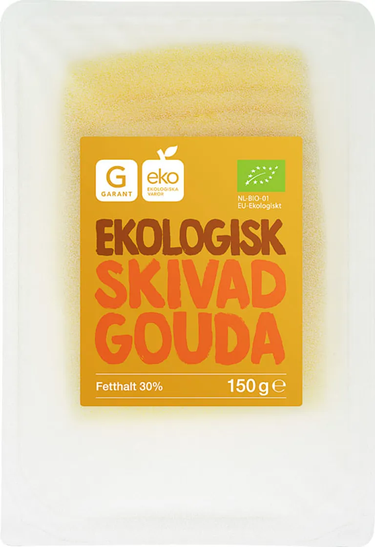 Ekologisk skivad goudaost. Fetthalt 30%. 150 gram.