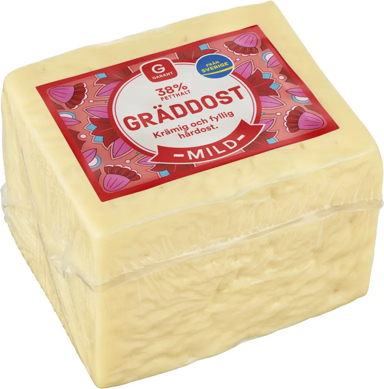Gräddost, fetthalt 38%. Ystad av Svensk mjölk från glada bönder. Traditionellt gjord krämig halvhård ost med fyllig karaktär. 1kg
