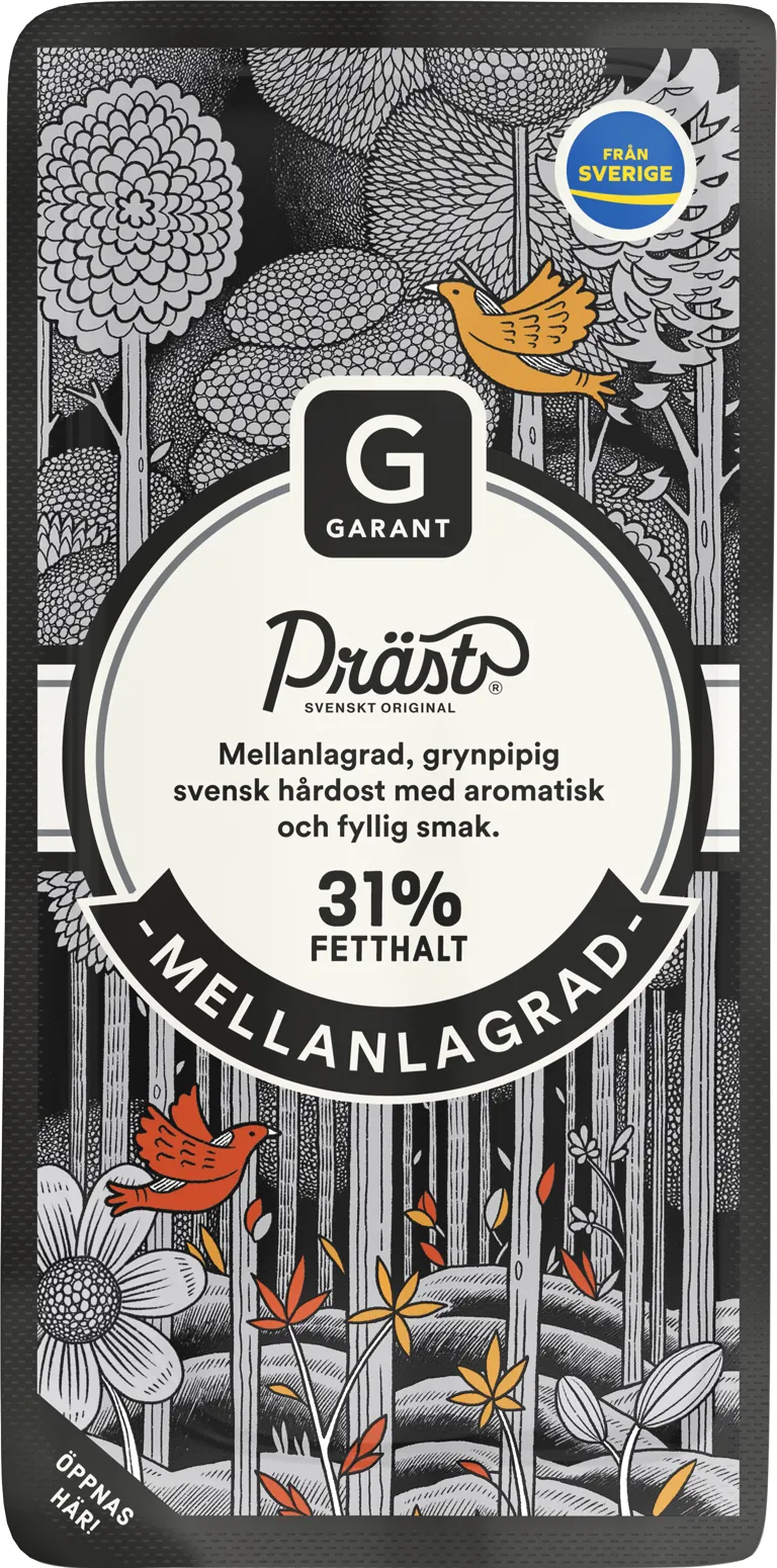 Skivad mild Präst®. Gryning, svensk hårdost med aromatisk och fyllig smak. Fetthalt 31%. 150 gram.