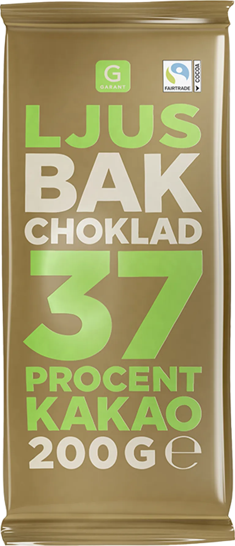 Ljus bakchoklad. 37% kakao. 200 gram.