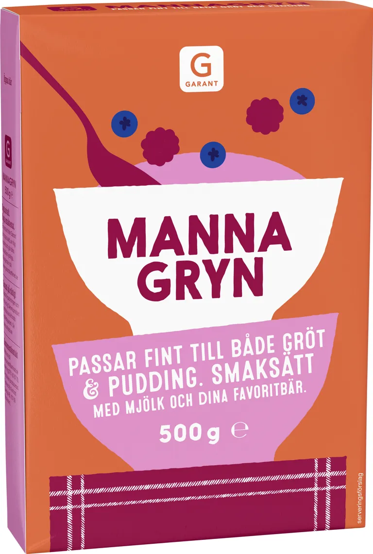 Mannagryn. Passar fint till både gröt och pudding. Smaksätt med mjölk och dina favoritbär. 500 gram.