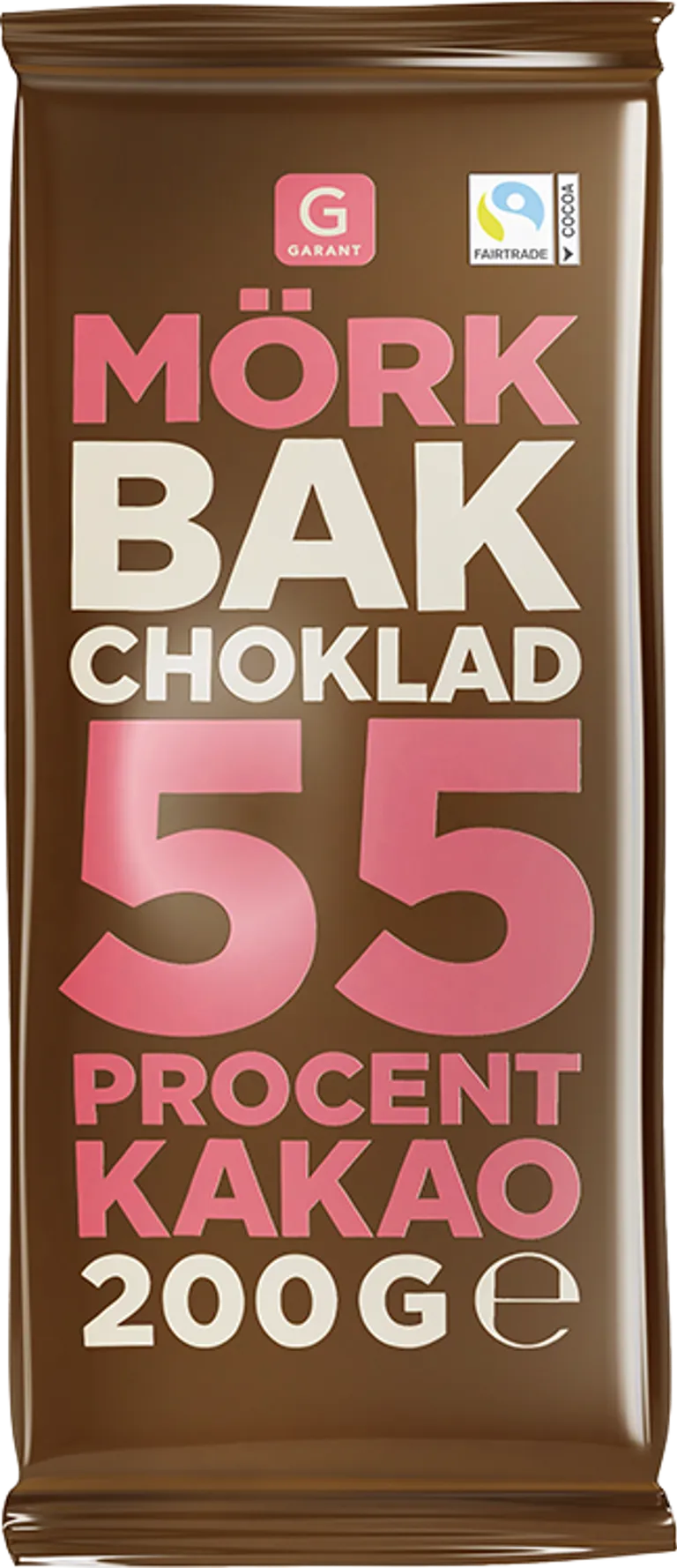 Mörk bakchoklad. 55% kakao. 200 gram.