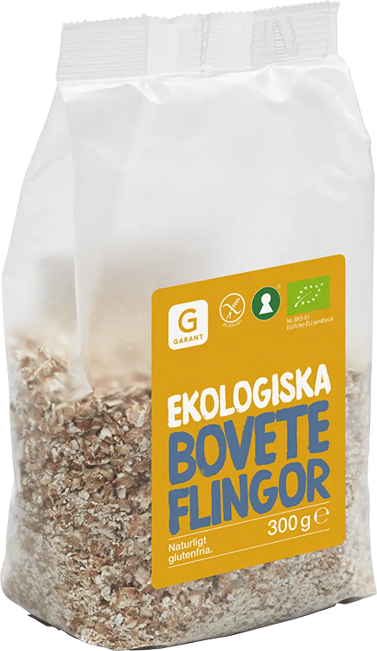 Ekologiska bovete flingor. Naturligt glutenfria. 300 gram.