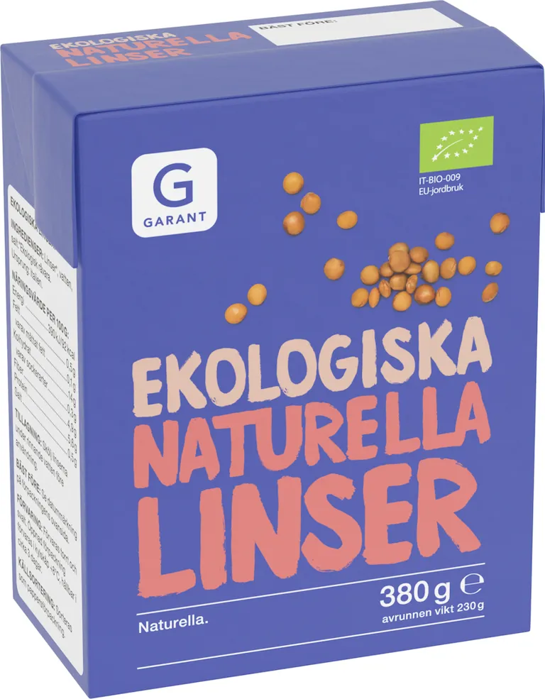 Linser*, vatten, salt.* Ekologisk råvara.