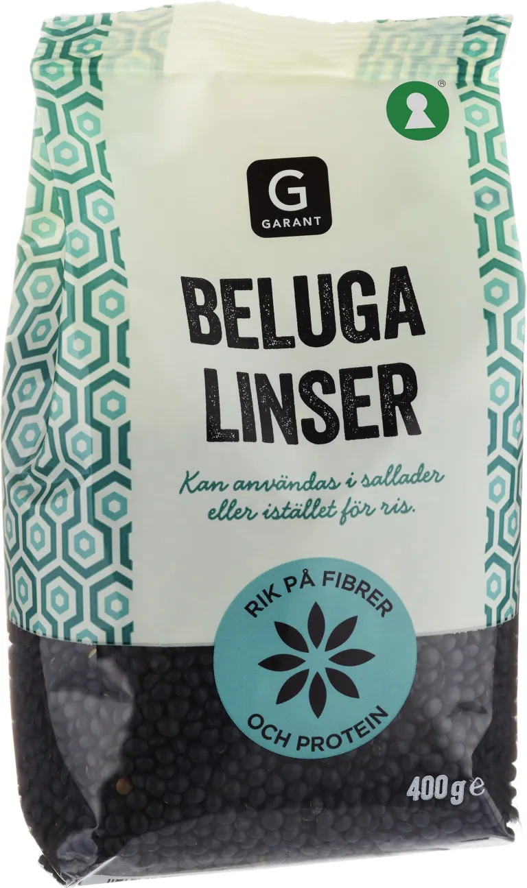 Belugalinser. Kan användas i sallader eller istället för ris. Rik på fibrer och protein. 400 gram.