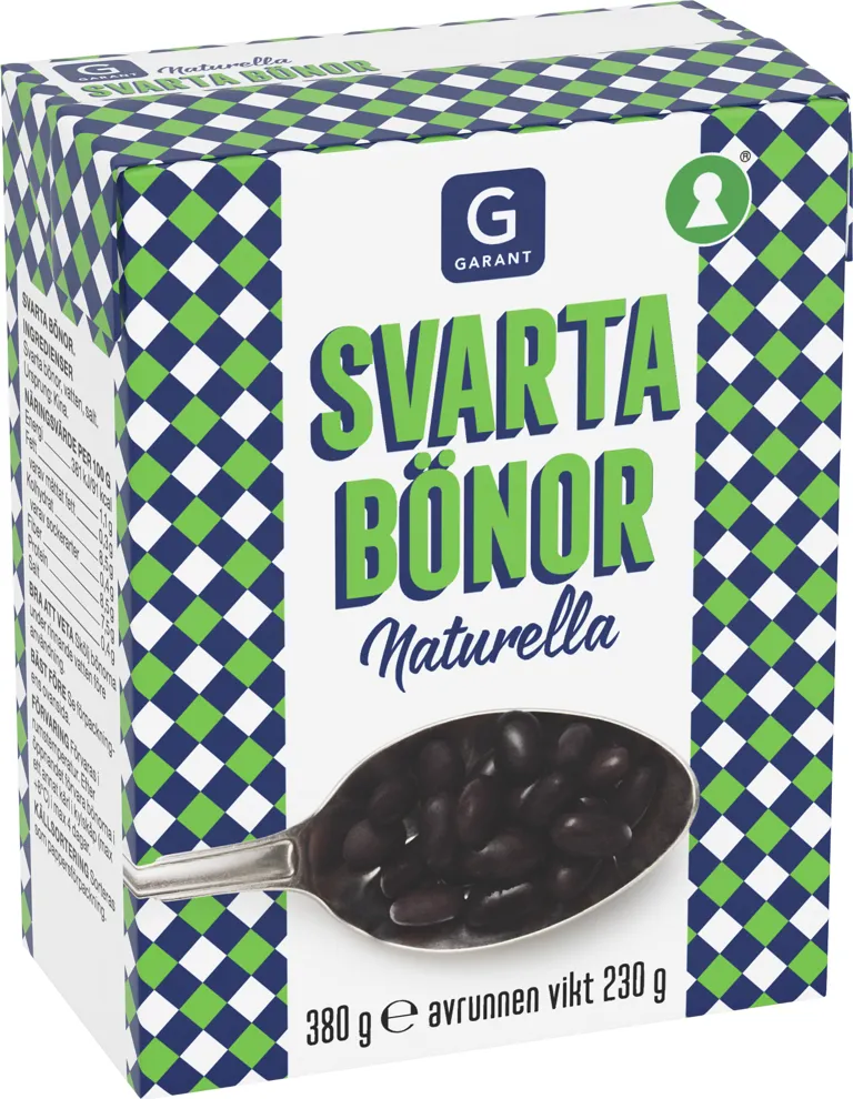 Svarta naturella bönor. 380 gram, avrunnen vikt 230 gram.
