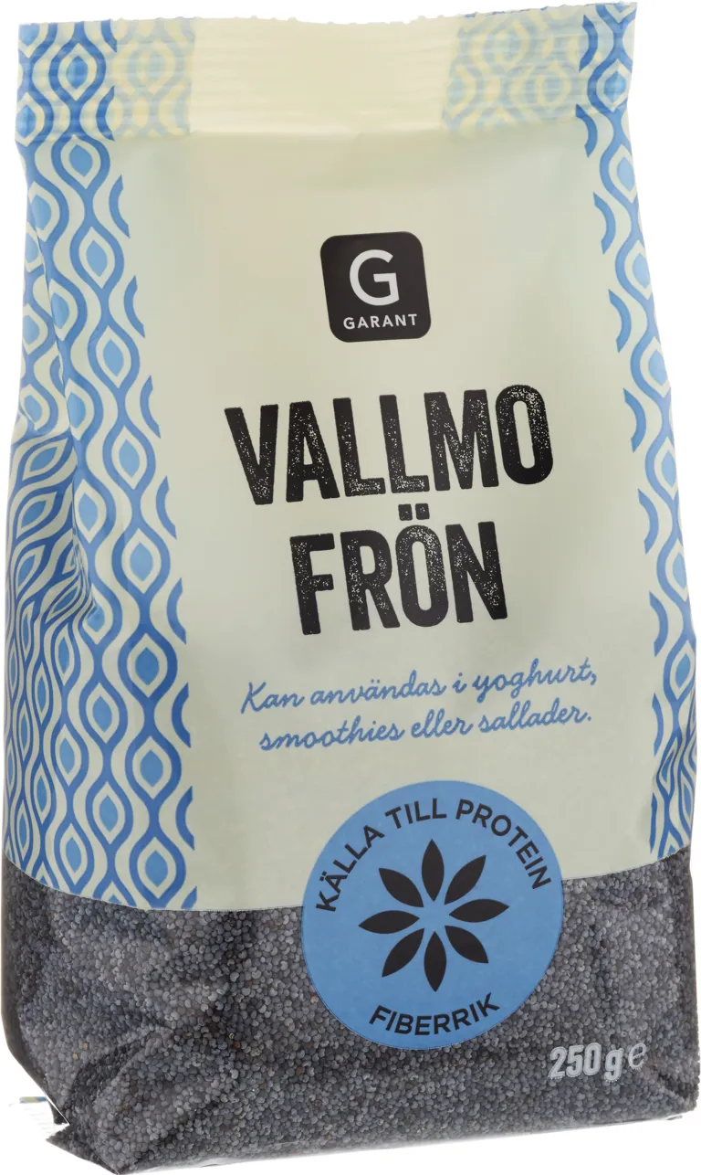 Vallmofrön. Kan användas i yoghurt, smoothies eller sallader. Källa till fiber och protein. 250 gram.