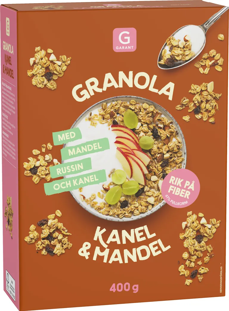 Granola med mandel, russin och kanel. Rik på fiber. 400 gram.