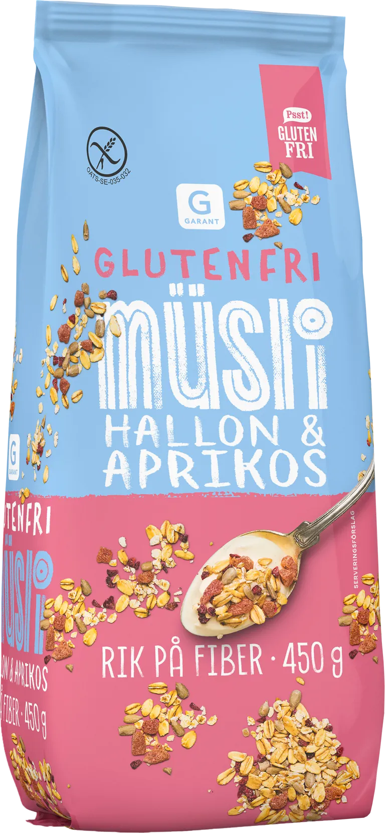 Vår müsli är märkt med det överkorsade axet från Svenska Celiakiförbundet. Märkningen intygar att en produkt med säkerhet är glutenfri. Glöm inte att vara snäll mot miljön! Sortera kartongen som pappersförpackning i materialåtervinningen.