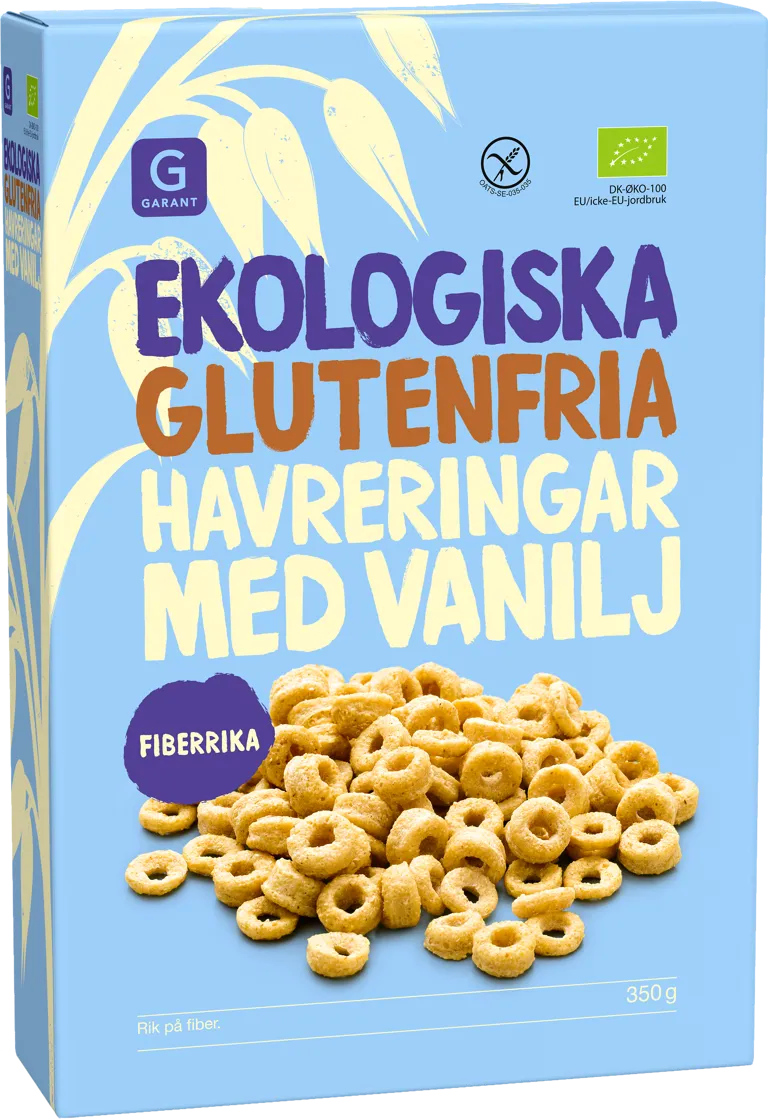 Våra ekologiska havreringar är märkta med det överkorsade axet från Svenska Celiakiförbundet. Märkningen intygar att en produkt med säkerhet är glutenfri. Glöm inte att vara snäll mot miljön! Sortera kartongen som pappersförpackning i materialåtervinningen.
