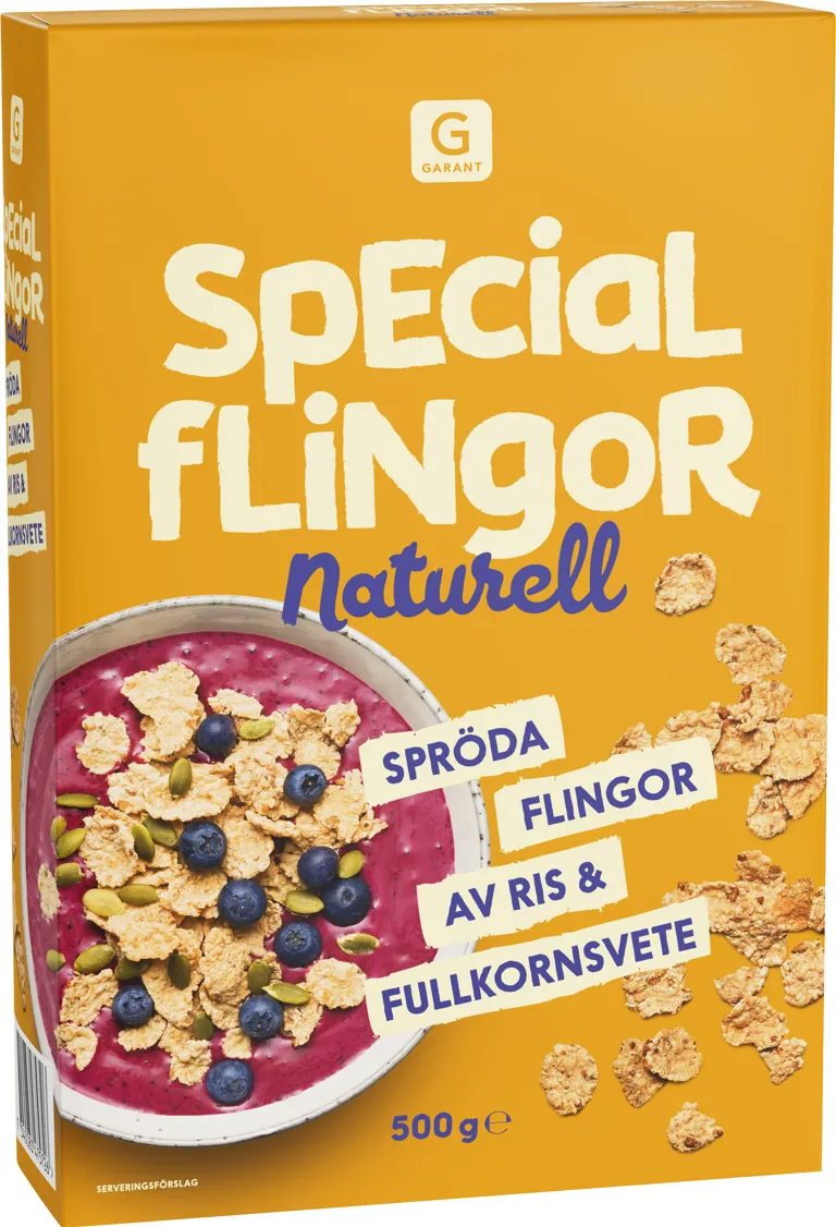 Specialflingor naturell av ris och fullkornsvete. 30% mindre socker. 500 gram.