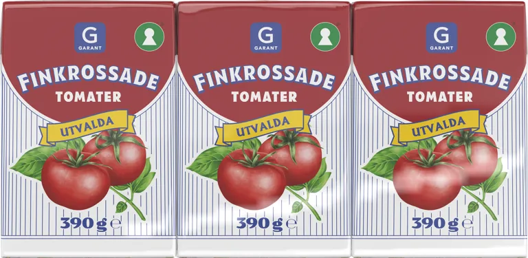 Våra finkrossade tomater är märkta med nyckelhålet som gör det enklare att välja hälsosamt. Mindre och nyttigare fett, mindre socker och salt, mer kostfiber och fullkorn! Glöm inte att vara snäll mot miljön. Sortera kartong som pappersförpackning i materialåtervinningen.