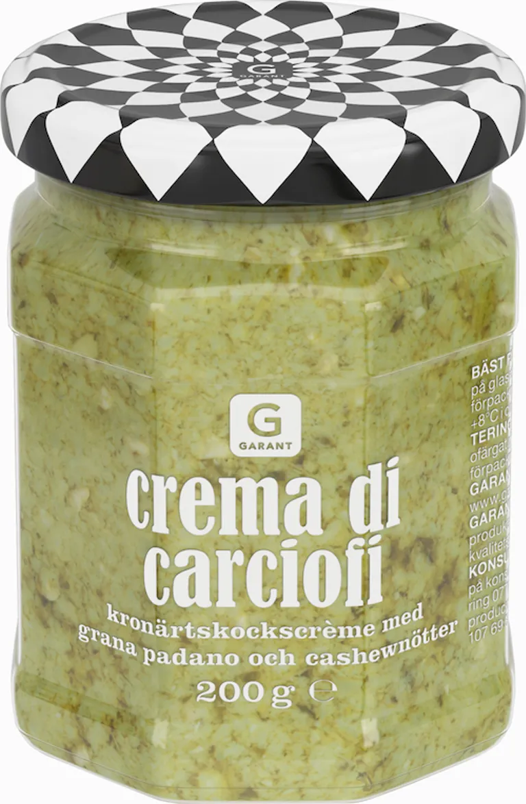 Crema di carciofi. Kronärtskockscréme med grana padano och cashewnötter. 200 gram.