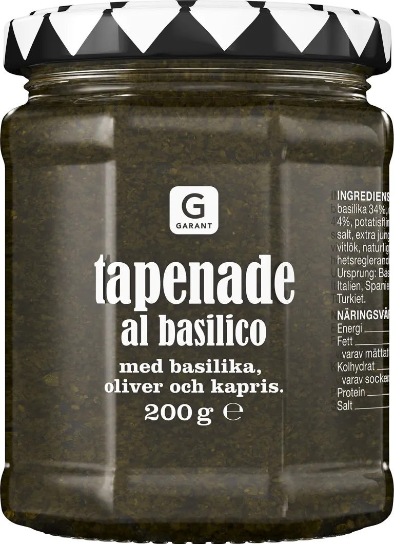 Tapenade al basilico med basilika, oliver och kapris. 200 gram.