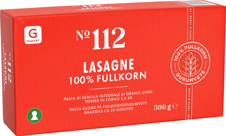 Fullkorns lasagneplattor. Pasta gjord på fullkornsmjöl av durumvete. 500 gram.