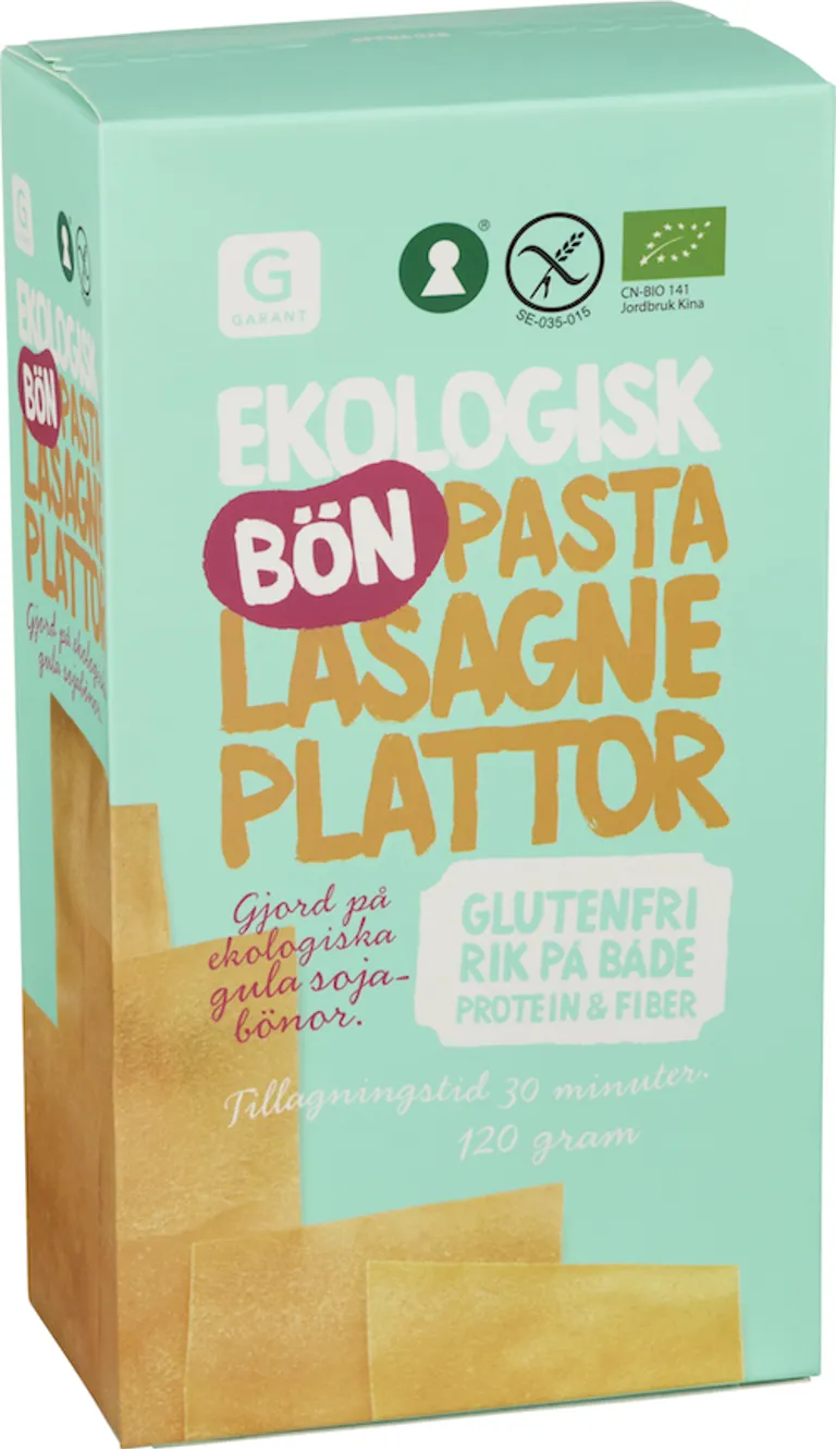 Ekologiska lasagneplattpr gjord på gula sojabönor. Glutenfri, rik på protein och fiber. 120 gram.