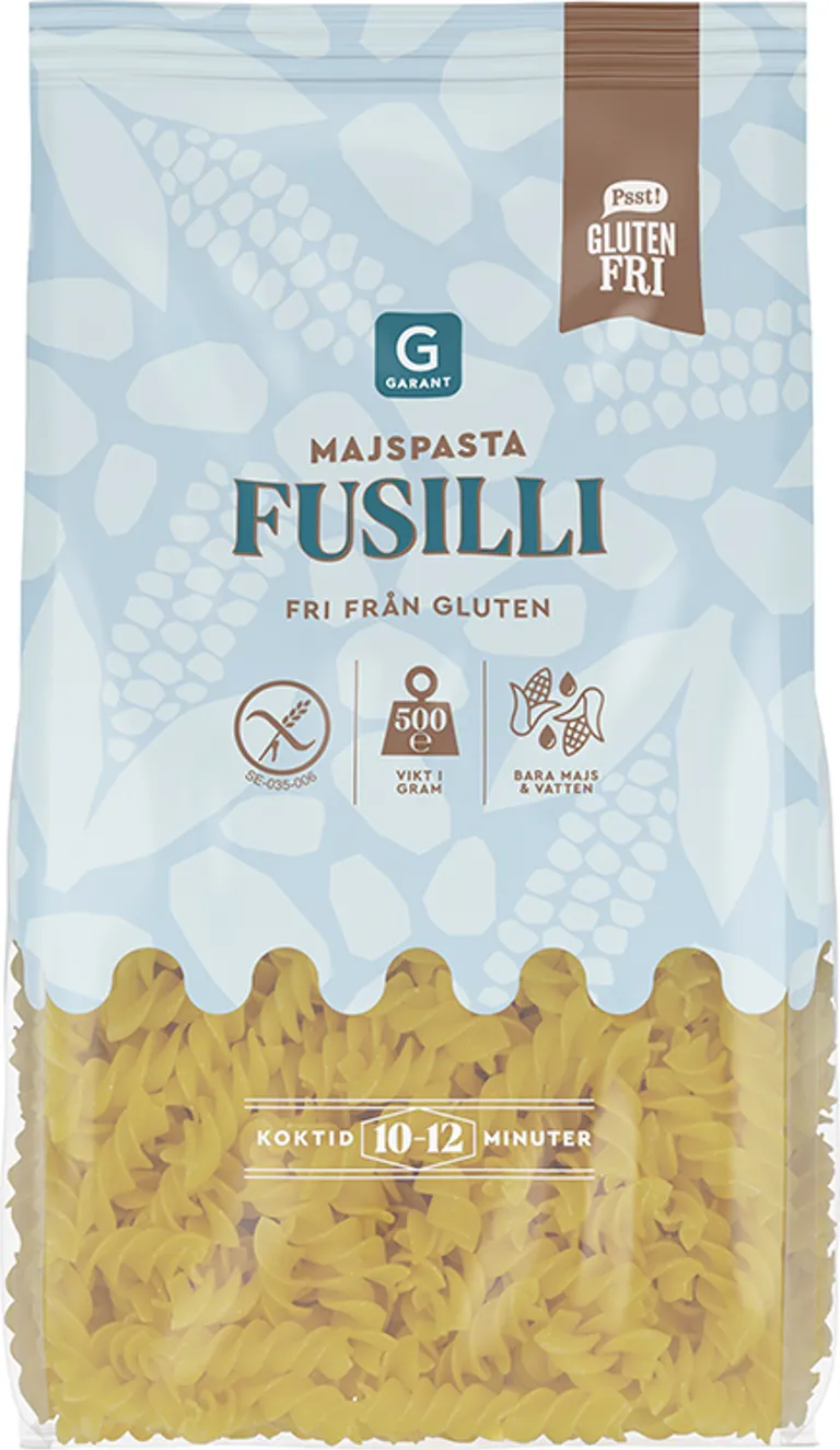 Glutenfri fusili gjord på majsmjöl. 500 gram.