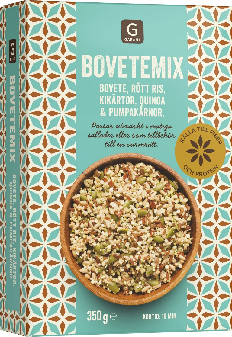 Grynmixer är bland det finaste vi har! Garanterat gott i matiga sallader eller som tillbehör till en varmrätt. Den här fiberrika bovetemixen innehåller bovete, rött ris, kikärtor, quinoa och pumpakärnor. Koktid 10 minuter.