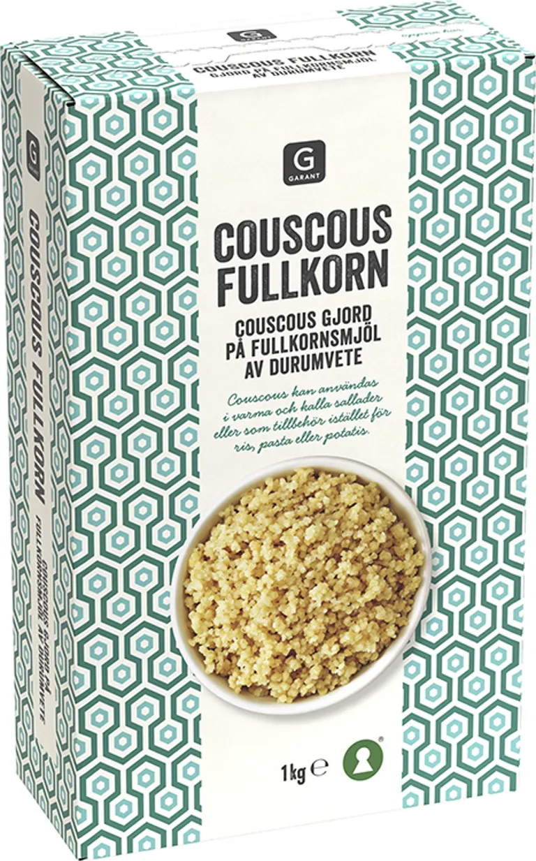 Couscous fullkorn gjord på fullkornsmjöl av durumvete. Kan användas i varma eller kalla sallader eller som tillbehör istället för pasta, ris eller potatis. 1 kg.