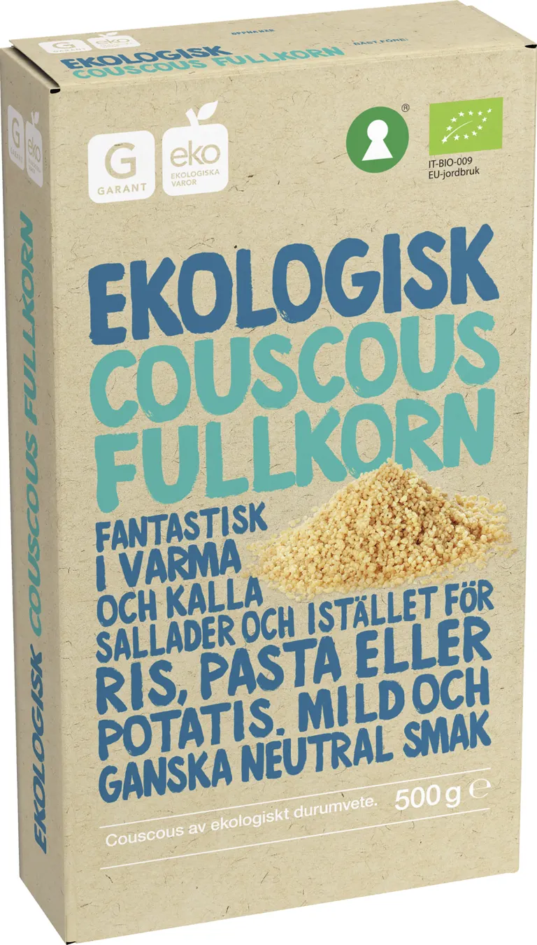 Fullkorns-couscous av ekologiskt durumvete. Fantastisk i varma och kalla sallader och istället för ris, pasta eller potatis. Mild och ganska neutral smak. 500 gram.