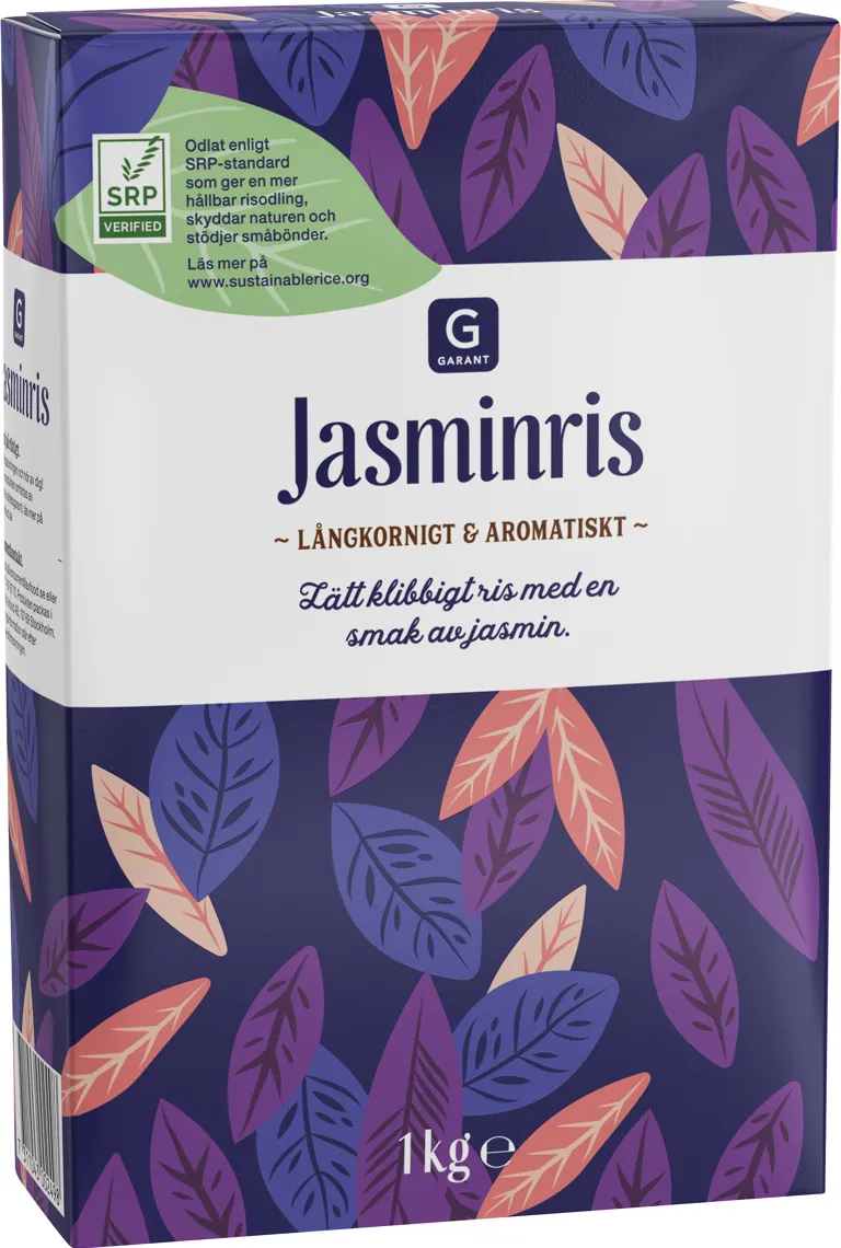 Jasminris. Långkorningt och aromatiskt. Lätt klibbigt och ris med en smak av jasmin. Tips! Passar till thailändska rätter. 1 kg.