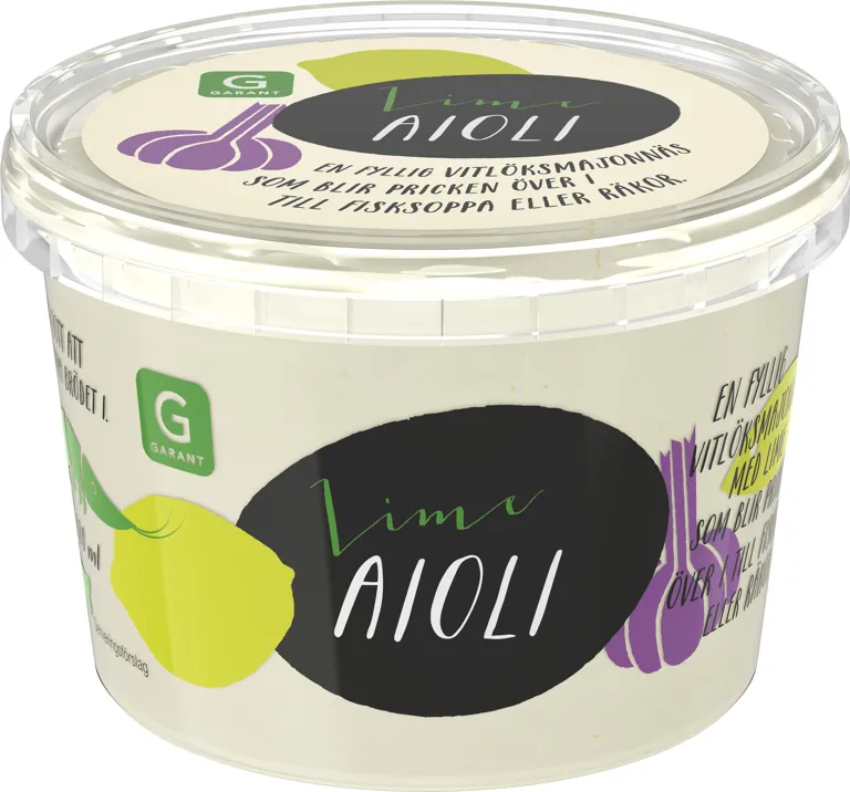 Limeaioli. En fyllig vitlöksmajonnäs blir pricken över i till fisksoppa eller räkor. 220 ml.