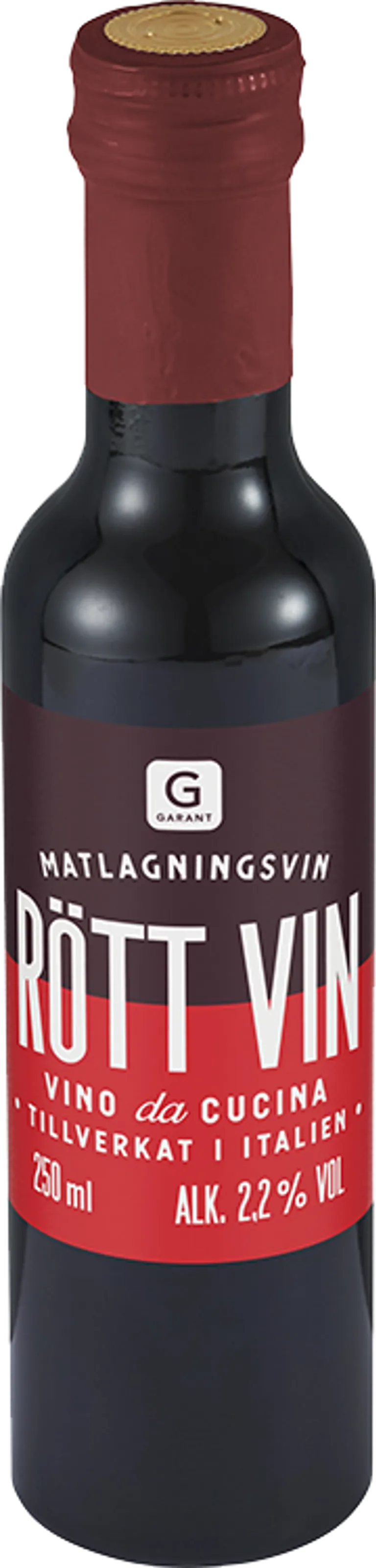 Rött matlagningsvin. Tillverkat i Italien. 2,2% alkohol. 250 ml.