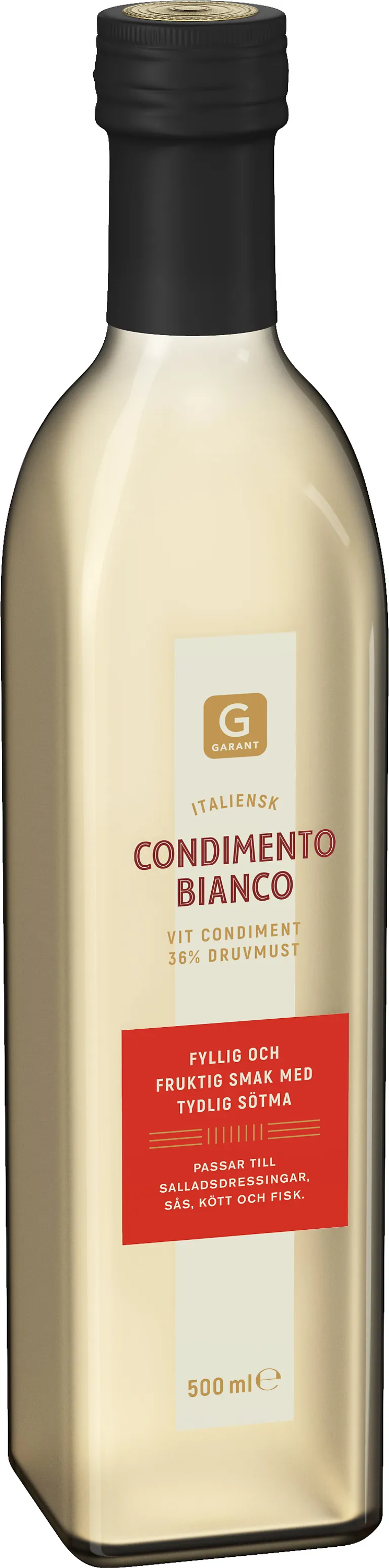 Italiensk condimento bianco med 36% druvmust. Fyllig och fruktig smak med tydlig sötma. Passar till salladsdressingar, sås, kött och fisk. 250 ml.