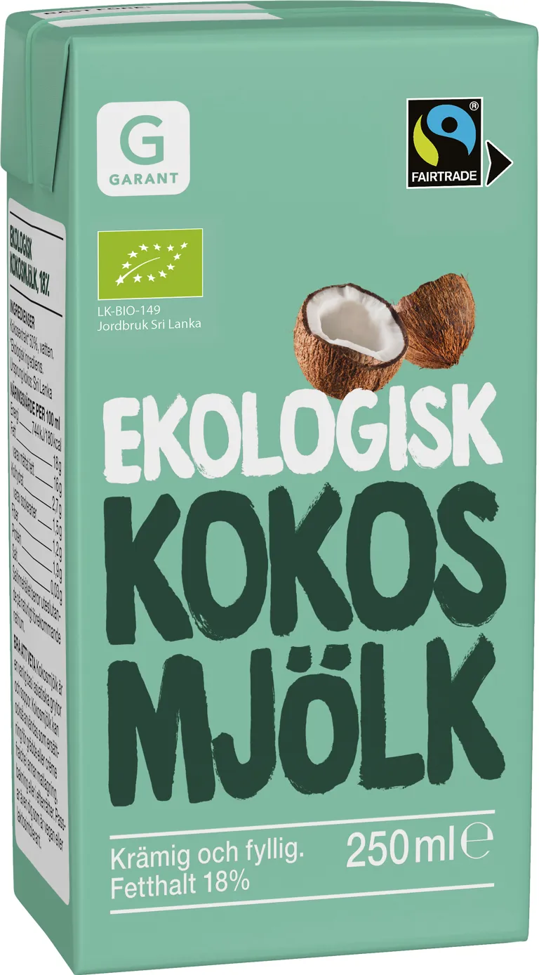 Ekologisk kokosmjölk. Krämig och fyllig. Fetthalt 18%. 250 ml.