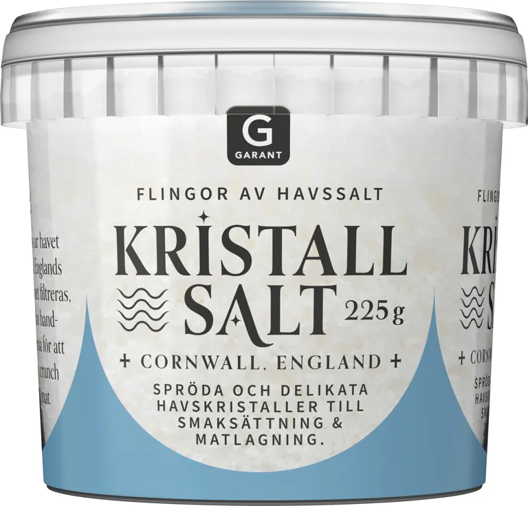 Kristallsalt från Cornwall. Spröda och delikata flingor av havskristaller. Till smaksättning och matlagning. 225 gram.