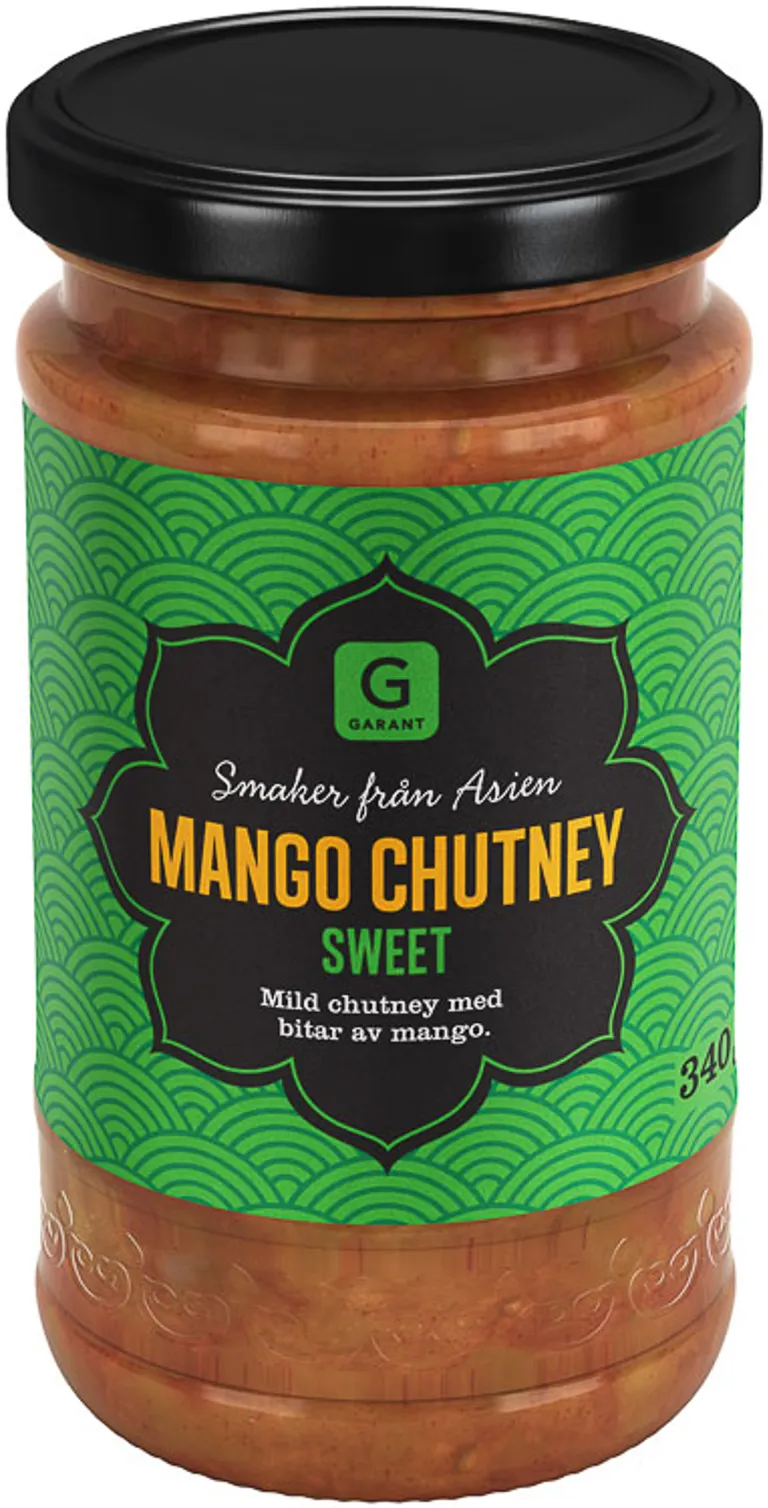 Mango chutney sweet. Mild chutney med bitar av mango. 340 gram.