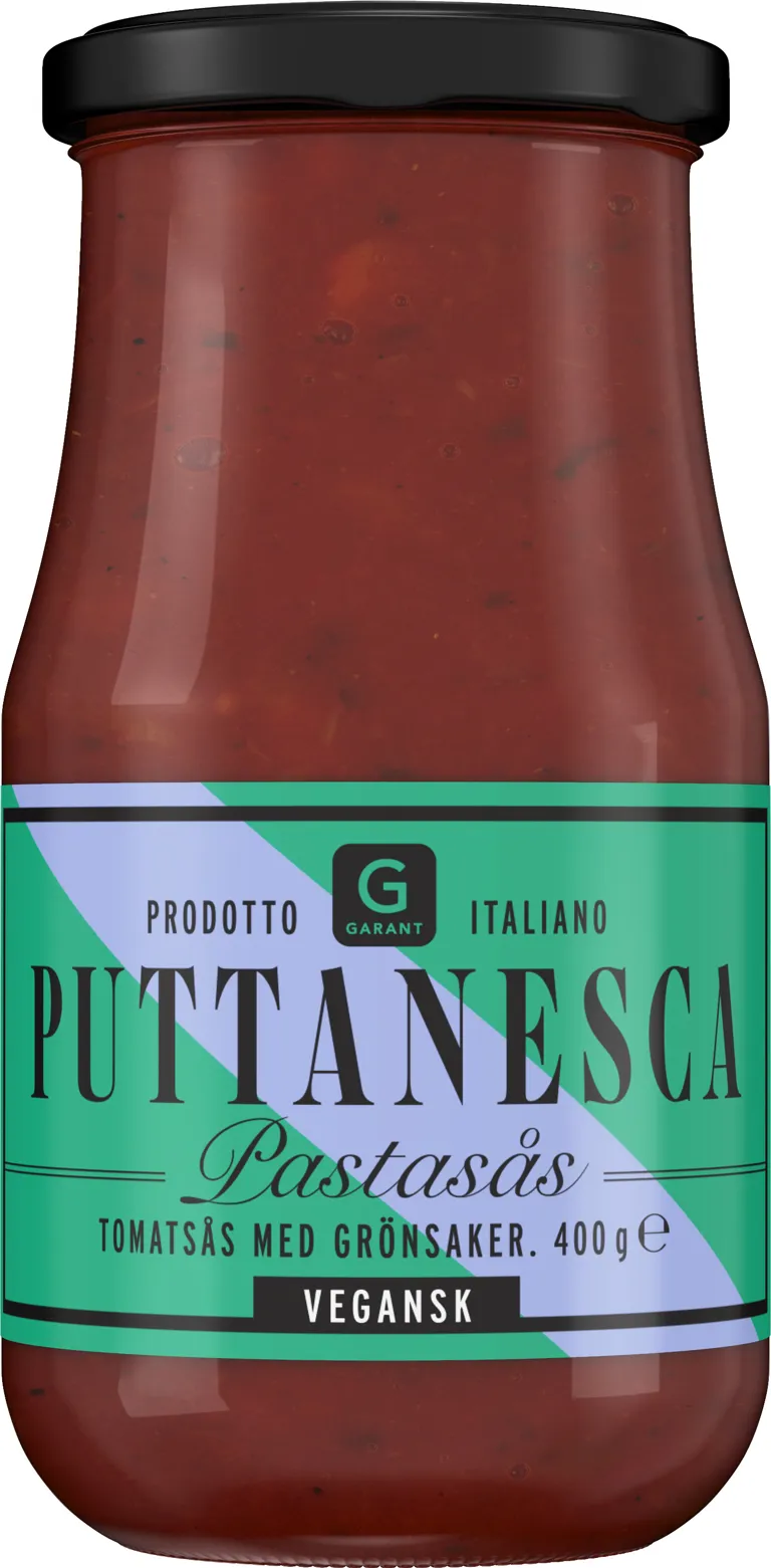 Tomatbaserad pastasås puttanesca med grönsaker. Vegansk. 400 gram.