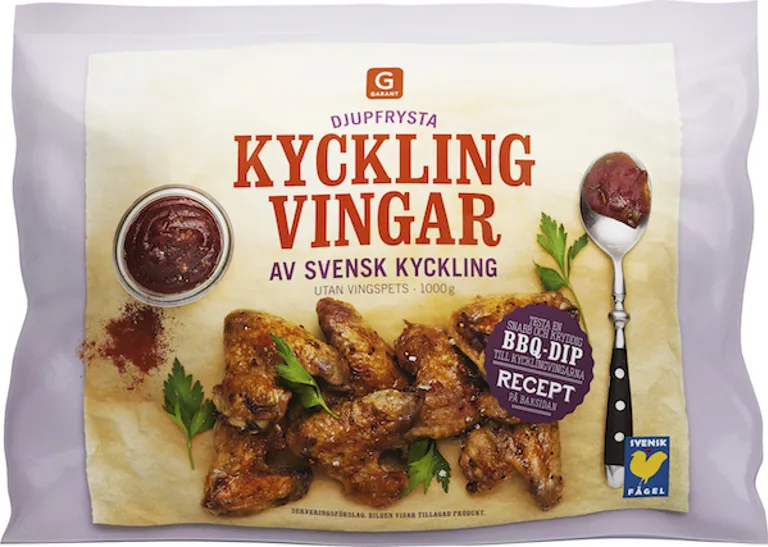 Kycklingvingar utan vingspets. Köttursprung: Sverige.
