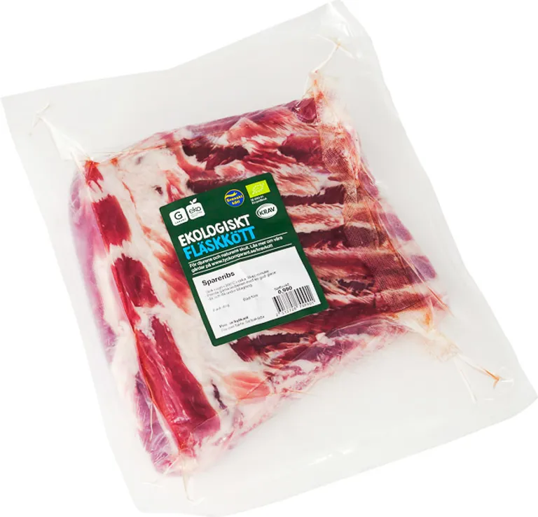 Här är de, våra oemotståndliga spareribs! Krydda, lägg dem i en långpanna och stek i ugnen i ca 30-45 minuter i 175 grader. Klart och smarrigt! Märket Svensk Kött visar att köttet i produkten kommer från djur som är födda och uppfödda i Sverige. Produkten är även förädlad och förpackad i Sverige.