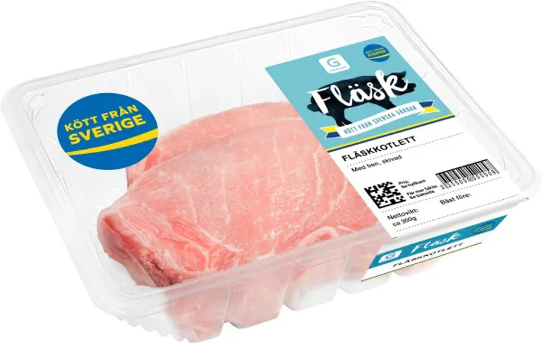 Skivad fläskkotlett med ben. Kött från Sverige. Ca 1,1 kg.