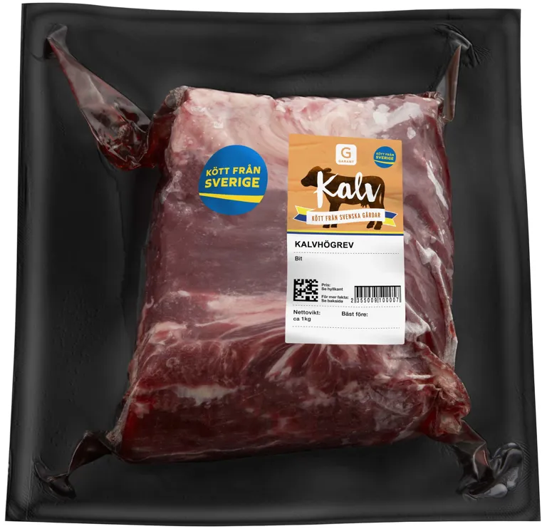 Får vi presentera vår fina och smarriga kalvhögrev? Passar alldeles utmärkt till dillkött eller andra goda grytor. Hoppas det smakar! Märket Kött från Sverige visar att köttet i produkten kommer från djur som är födda och uppfödda i Sverige. Produkten är även förädlad och förpackad i Sverige.