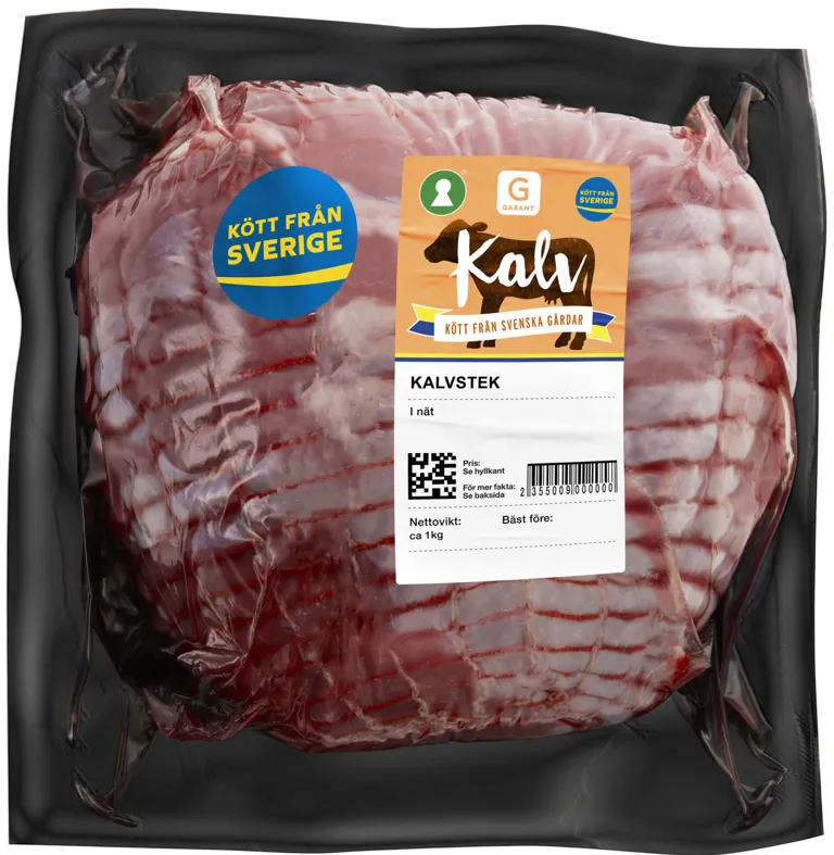 Får vi presentera vår fina kalvstek? Stek den i ugnen på 175 grader till ca 75 graders innertemperatur. Tillaga med nätet på. Smakligt kött! Märket Kött från Sverige visar att köttet i produkten kommer från djur som är födda och uppfödda i Sverige. Produkten är även förädlad och förpackad i Sverige.