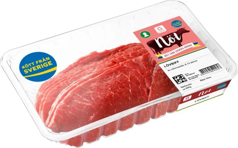 Lövbiff av nötinnanlår. Kött från Sverige, 8-12 skivor.