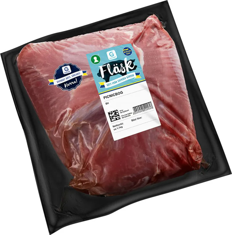 Vår härliga picnicbog passar till mycket, men är extra smarrig när den får vara huvudperson i en gryta, gulasch eller wok. Smaklig måltid! Märket Kött från Sverige visar att köttet i produkten kommer från djur som är födda och uppfödda i Sverige. Produkten är även förädlad och förpackad i Sverige.