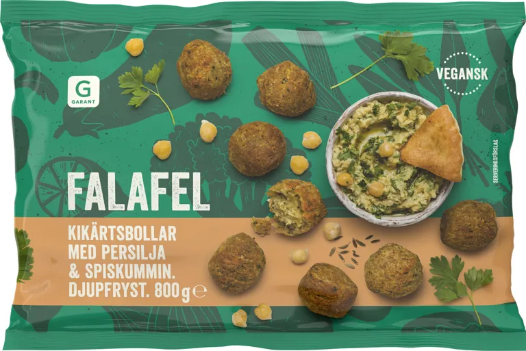 Djupfryst falafel. Kikärtsbollar med persilja och spiskummin. 800 gram.