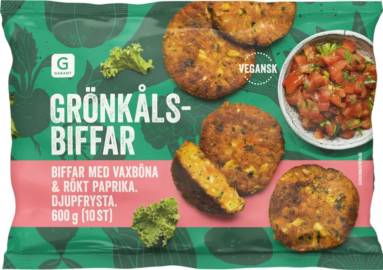 Djupfrysta grönkålsbiffar. Biffar med vaxböna och rökt paprika. 10 stycken.