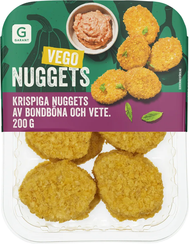 Vegonuggets baserade på bondböna och vete. Krispiga. 200 gram.